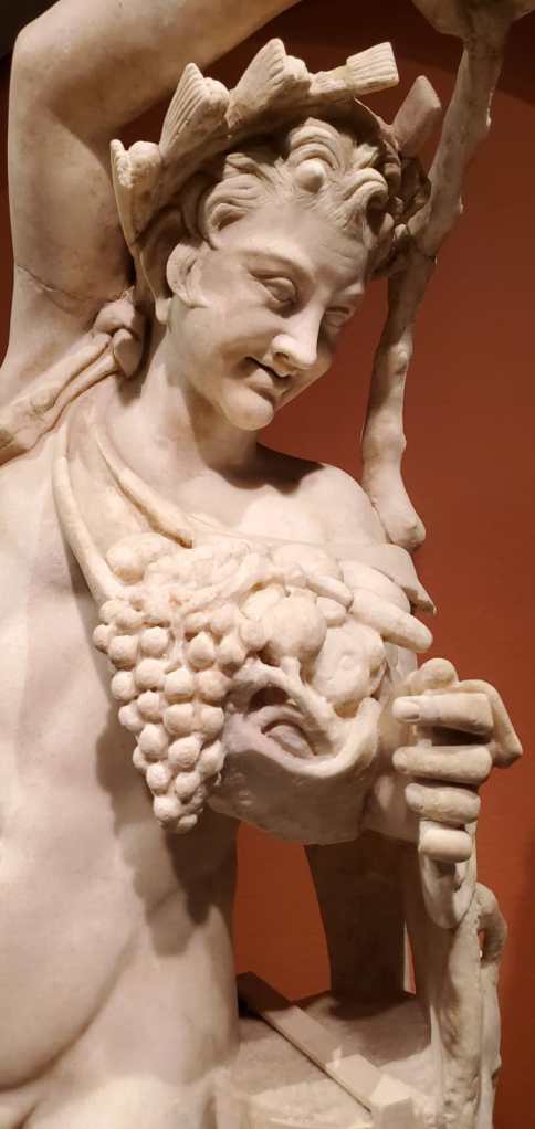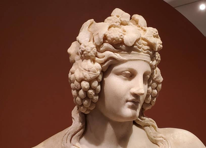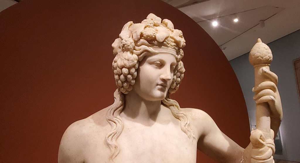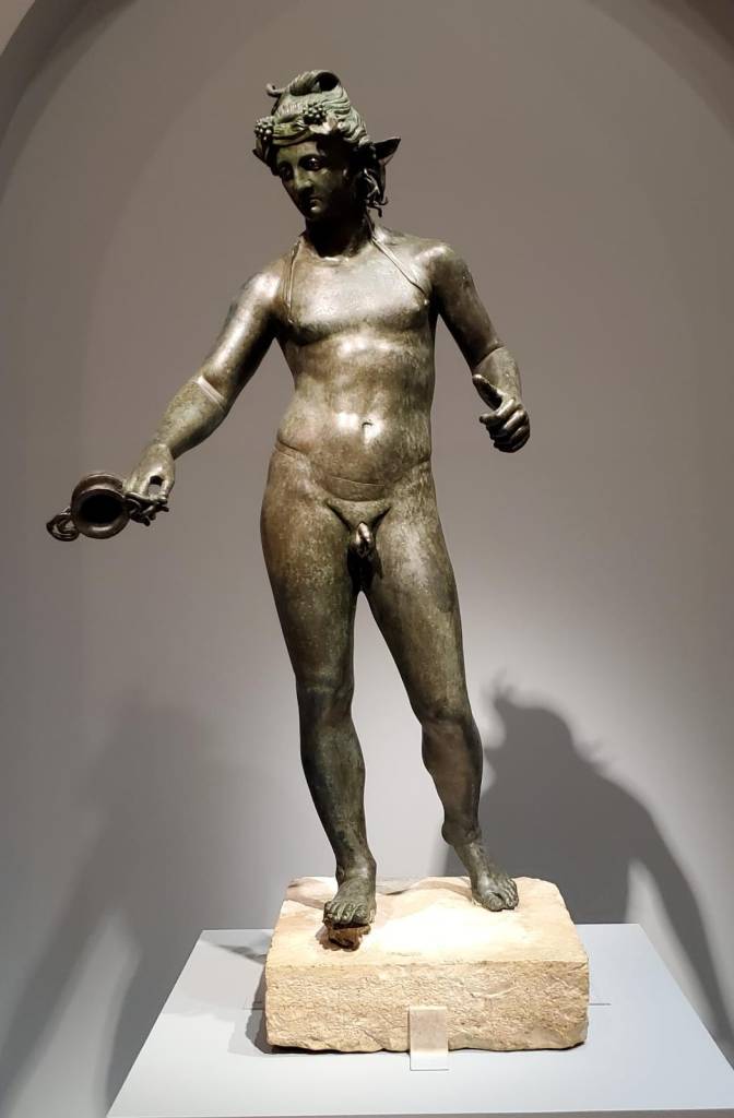 Baco dominava a exposição. Não por acaso. O deus do vinho tinha alta importância na vida dos habitantes de Pompeia. Ele estava ostensivamente presente na imponente estátua de mármore de quase dois metros logo na entrada da exposição, num afresco que fazia parte de um santuário doméstico e em uma escultura de bronze – mas seu espírito estava em toda parte, impregnando cada porção sobrevivente dos dias de Pompeia. Esta era fascinada por mesa farta, pela arte de beber em abundância e pelas festividades. Carpe diem (aproveite o dia) era o lema de um grupo social que cultuava as alegrias do corpo.