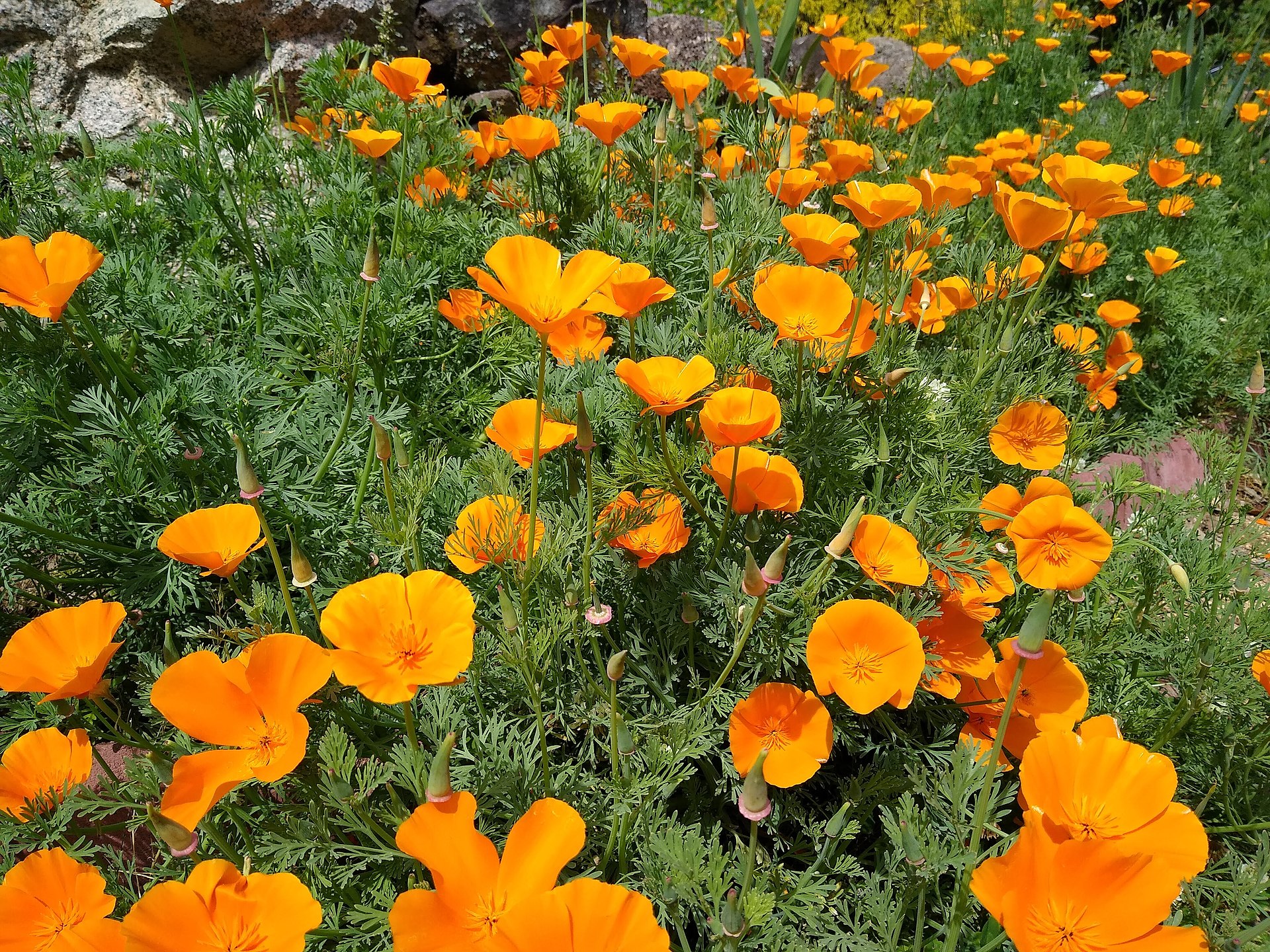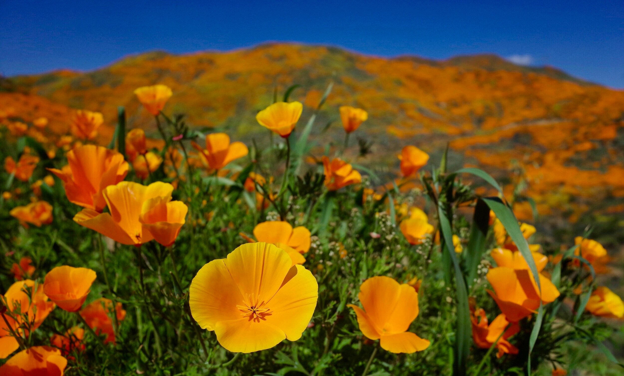 Por toda a Califórnia, a Golden Poppy, a Papoula Dourada, cresce selvagem, inundando a terra com suas pétalas de seda, irradiando seu brilho laranja-dourado. Como a flor oficial do estado da Califórnia, ela é retratada em placas de boas-vindas ao longo das rodovias ao entrar na Califórnia e nas placas oficiais da Scenic Route.