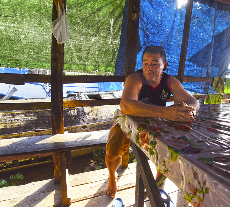 Ao chegar na vila do Taperebá após vários dias no mar, o pescador Walmir Chagas Mendonça encontrou a casa vazia. “A mulher tinha ido embora com as crianças. Ficou só uma sacola de roupas. Senti uma tristeza tão grande que lagrimei”, conta.
